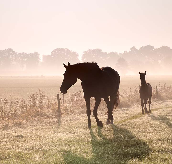 Chevaux et doubles-poneys : ½ seringue avant et ½ après la compétition.